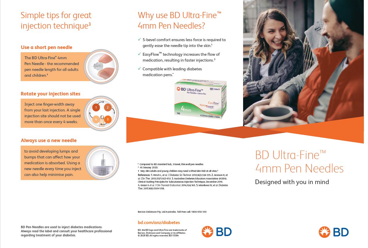 Talk to your diabetes healthcare professional today about upgrading to the BD Ultra-Fineƒ?› 4mm Pen Needle with EasyFlowƒ?› Technology for a more comfortable injection experience.1,2