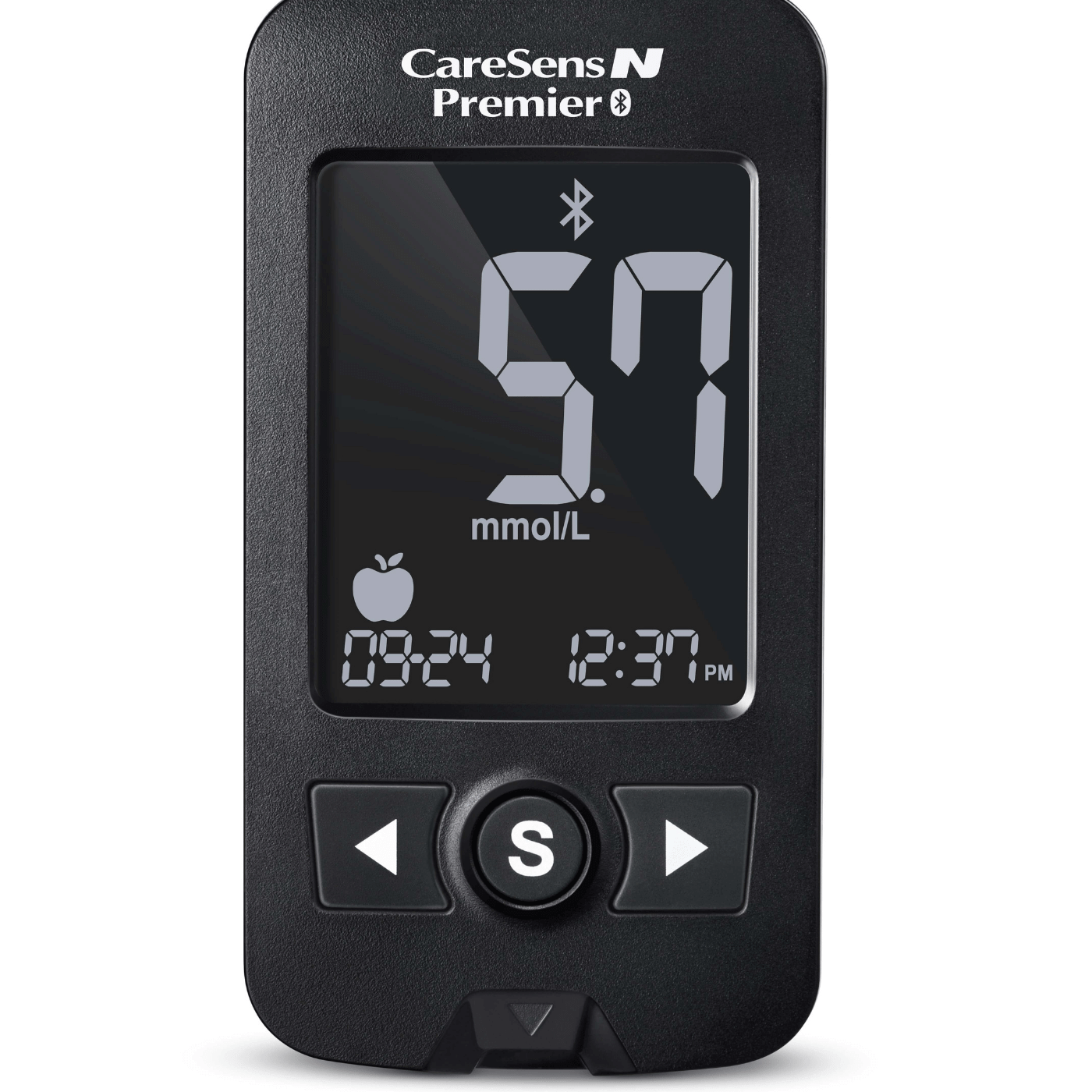 The CareSens N Premier blood glucose meter helps make managing your data easy. With Bluetooth functionality, it provides quick and easy transfer of your readings to the SmartLog app on your compatible phone. From there you can easily review and share your monitoring. Test strips required: CareSens N strips.