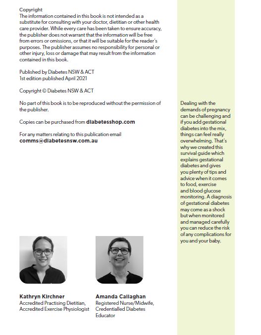 The gestational diabetes survival guide coves everything from how to check your blood glucose levels to questions you may have about taking medications and the impact on your baby.?ÿ