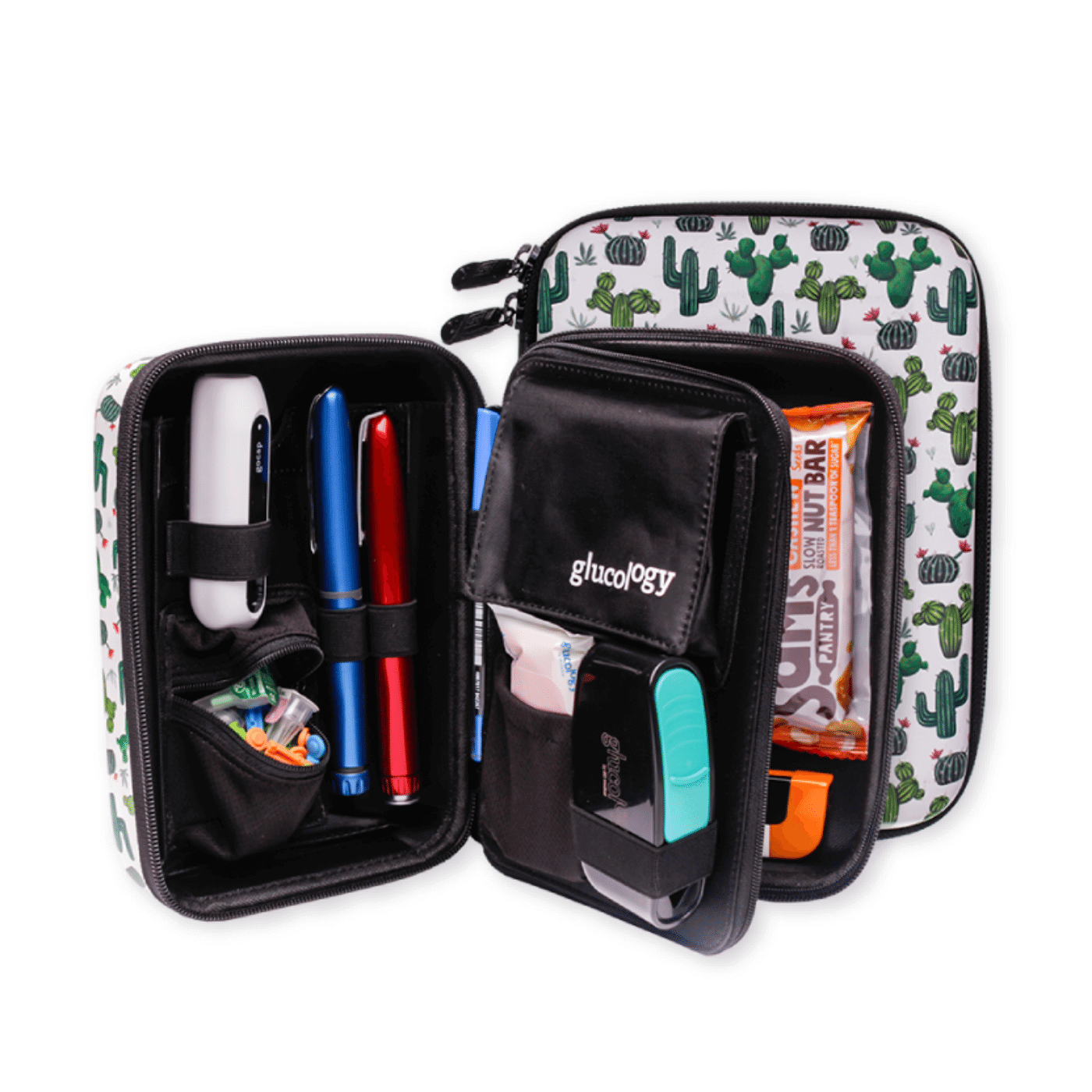 - Store all your necessities in one space including insulin pens, medicine, alcohol wipes, glucose meter and more