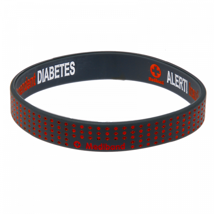 Silicone medical ID wristband for people that are insulin dependent. Ideal for active people, or those that want something more subdued than a metal bracelet.