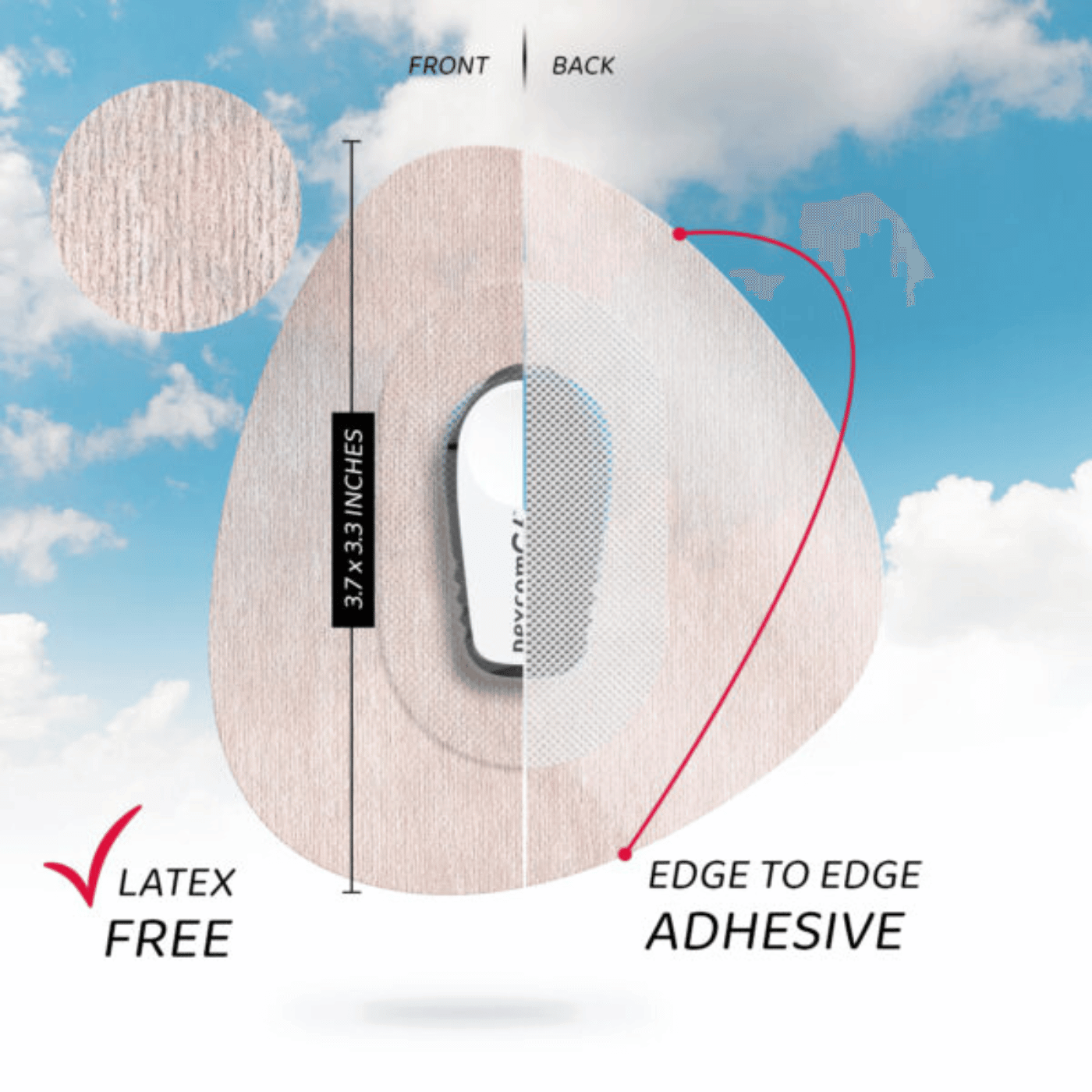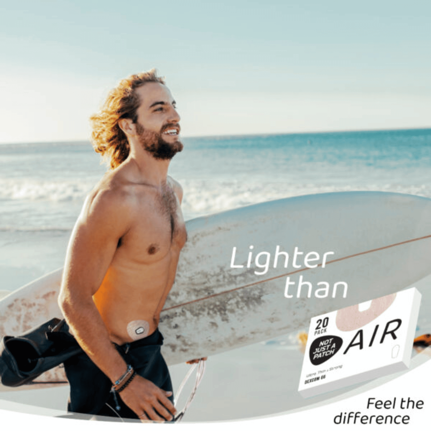 Donƒ??t worry that the light and airy design means itƒ??s not going to work when the going gets tough. Air will stay fixed to your skin for 10-14 days thanks to edge-to-edge adhesive. These patches are designed by a T1D surfer who knows how important it is to keep your monitor safe in all conditions.
